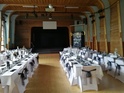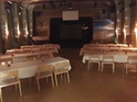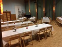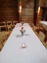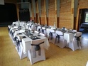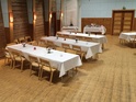 Juhlasalissa käytettäviä pöytiä on 22 kpl ja ne ovat kooltaan 80x160cm.
